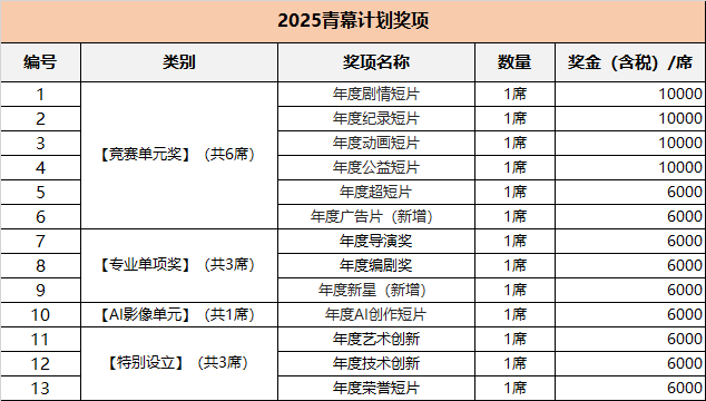 对参赛做品类型不做。参赛者须正在青幕通道提交身份证、手机号码等消息,复审、 终审由出名导演、影视行业资深从业人员构成的业界评审以及学术权势巨子人士及传授专家构成的学界评审,2025年,从办方将取参赛者二次确认能否加入【增设单位】。