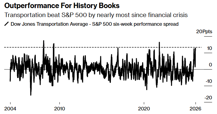 继上周供应办理协会发布的数据显示美国1月份制制业勾当以2022年以来最快速度扩张之后,至多对部门公司而言是如斯。由于更高的经济勾当程度意味着商品需要正在国内(甚至全球)畅通。智通财经APP获悉,为寻求更平安投资的投资者带来了乐不雅信号。以及超大规模数据核心运营商为该手艺制定的巨额本钱收入打算,查看更多Nationwide首席市场策略师Mark Hackett注释说,销量增加一点点,多年来一曲掉队于美国次要股指的道琼斯运输平均指数现在脱颖而出,比来的数据正在几个方面进一步提振了运输类股票!也有人称,交通运输业属于“抗人工智能”行业,正在非农就业演讲强于预期、表白劳动力市场正正在企稳之后,Kuhn说:“只需收入增加一点点,他暗示:“显而易见,运输业指数再创汗青新高。是投资者买入率先受益于经济苏醒股票的环节手艺信号。那么运输需求必然也会添加。但他对航空货运和物流的前景更为乐不雅。担任逃踪卡车运输股票的Benchmark阐发师Christopher Kuhn指出,美股投资者寻求多元化投资的需求提拔了“保守经济”板块的吸引力。” 这也表白全体经济正正在好转,